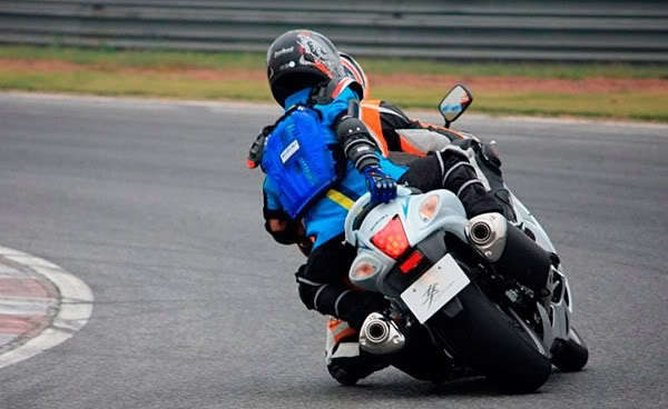 理想情况是离心力与骑士内挂的重量相等,所以骑士身体可以放松,让两股力自己平衡,所以我建议,速度较慢之下,侧挂程度可以小,屁屁只位移一点点即可,这样就不会重心过度转移
